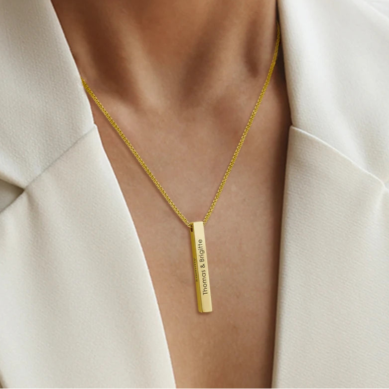 Iga külg sellel minimalistlikul kaelakeel kannab nime, mis on sinu südamele kallis.